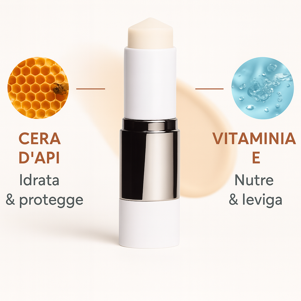 Il nostro stick colorato è formulato con una lista INCI corta e delicata, pensata per offrire idratazione, comfort e un finish liscio e naturale — particolarmente adatta alle pelli sensibili e mature.
